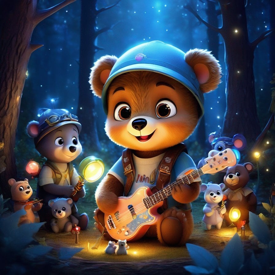 Barney's Bear Band: Barney the bear loves music, but he plays a tiny recorder that sounds like a squeaky toy. One day, he finds a magical abandoned instrument case in the forest. When he opens it, the instruments come to life, playing beautiful music on their own! Barney forms a band with the instruments and fills the forest with joyful melodies.