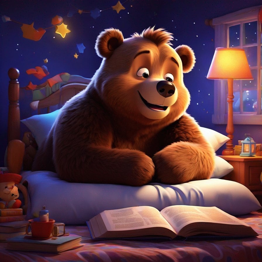 Once upon a time, in a cozy little forest, there lived a big brown bear named Barney. Barney was not like other bears; he had a special gift. Every night, when the moon rose high in the sky, Barney's eyes would grow heavy, and he would drift off to sleep. But when he closed his eyes, a magical storybook world would come to life.